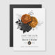 Vintage orange and black floral magnetic gothic Halloween-themed wedding save the date invite customisable to your specifics.