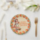 Charming vintage-style paper plates featuring an adorable little girl in an orange-patterned dress surrounded by a delightful border of peaches and green leaves. The sweet "Grandma's Old-fashioned Peach Butter" text adds nostalgic charm perfect for tea parties, birthday celebrations, or any gathering that calls for a touch of old-fashioned sweetness. These disposable plates combine practicality with vintage aesthetic appeal.