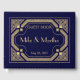Keeping in the 1920s Great Gatsby tradition this guest book features a bold geometric decorative pattern and lettering in gold on a navy background.