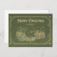 Vintage Green and Gold Merry Christmas Cabin Postcard