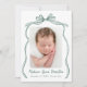 Vintage Green Bow 2 Photo Birth Announcement