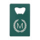 Vintage green & linen white design with custom laurel wreath logo monogram to add your own initial, name or text - personalised credit card bottle openers.
