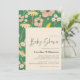Vintage Green Pink Floral Script Cute Baby Shower Invitation