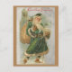 Vintage Green-Robed Father Christmas in Snow Postcard