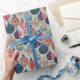 These retro and elegant Christmas wrapping paper feature a hand-drawn illustration of vintage Christmas ornaments in black ink against an elegant sage green background.