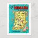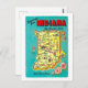 This postcard is a reproduction of a vintage map postcard showing the state of Indiana and its state flower, the peony.
