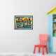 Celebrate the Eternal City with this vintage-style illustration inspired by 1940s Curt Teich linen postcards. “ROME” appears in bold uppercase letters filled with miniature images of Roman landmarks. Behind the text, a colourful retro view of the Colosseum and cypress trees evokes timeless Roman charm. Perfect for travel lovers and Italy enthusiasts.