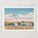 Greetings from Venice, Florida vintage postcard reproduction from the late 1940s or early 1950s shows the Chamber of Commerce building with a flag and a phone booth at the end of the building.