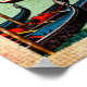 Float into the romance of Venice with this retro 1940s-style postcard illustration. “VENICE” appears in bold uppercase letters filled with miniature images of St. Mark’s Basilica, Rialto Bridge, and gondolas. The background shows colourful canals and Venetian buildings. Ideal for lovers of Italy’s most enchanting city.