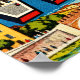 Step into the romantic city of Verona with this retro postcard-style illustration. “VERONA” appears in bold uppercase letters filled with miniature images of the Roman Arena, Juliet’s Balcony, and Castelvecchio Bridge. The background shows the Arena and lively streets in colourful vintage style. Perfect for celebrating Italy’s city of love.