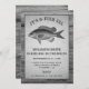 Invite your guests with this rustic fishing birthday party invitation featuring a grey fish against a vintage parchment background. Simply add your event details on this easy-to-use template to make it a one-of-a-kind invitation. Flip the card over to reveal a rustic barn wood texture on the back of the card.