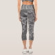 Vintage Grey Floral Botanical Pattern Capri Leggings