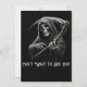 Choose between a printed version or a digital download for easy sharing via text, email, or social media. The back of the card features another Grim Reaper pointing his scythe towards the viewer, with the message "Can't Wait to See You" in matching vintage typography. This text is also editable to suit your theme.