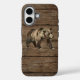 Vintage Grizzly Bear iPhone 16 Case with wood background.