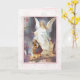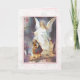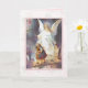 Featuring a custom designed religious watercolor-like image of a guardian angel watching over two children on a bridge. The GUARDIAN ANGEL prayer is on the inside with vintage pink roses background. All text and fonts can be modified.