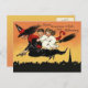 Wistful vintage Halloween design features two excited tykes taking a ride on a witches broom on Halloween night. The adorable vintage painting shines through this design so well that the charm of Halloweens past can't help but reveal itself.