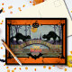 Celebrate Halloween with this beautifully designed vintage postcard featuring two black cats prowling on a spooky bridge under a full moon. Framed with classic Halloween elements like pumpkins, spider webs, and bats, this postcard captures the essence of old-school Halloween charm. Perfect for sending spooky greetings or for collectors of unique holiday-themed postcards.