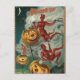 Vintage Halloween devils flying around jack-o-lanters. Vintage Wishes from a precious little reminder of Halloween past. Click customise and add your own text, create a party invitation or birthday greeting.