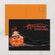 This design features a cute vintage illustration of a young witch and pumpkin. Ideal for Halloween party invitations! You can also personalize the design with your own background color theme, text, name or quote.