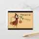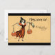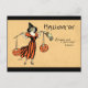 A cute, vintage, Halloween greeting card of a witch lady, holiding her broom over her shoulders, with Jack o' lanterns on hanging on each side of the broomstick, like a balance. The witch is wear a black, pointed hair, an orange and black striped dress, with a corset, and black heels. She has blonde hair, tied back in a bun, and fair skin. She is posing like the Libra astrology sign. Very cute and simple. On the greeting, it say, "Halloween, a happy and joyful time." Great for anyone who loves Halloween, witches, pumpkins, and vintage greeting cards. Check out my shop, SpookingGhost, for more Halloween and witch design, or vintage Halloween art.