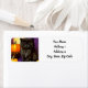Return Address Labels featuring a vintage Halloween kitten! A fluffy black kitty poses next to pumpkins against a purple background. A fun gift for Halloween parties and cat lovers!