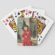 An old, vintage print of a little girl dressed like a witch, surrounded by black cats and a bat, and having a good time during Halloween. This jacket cover looks very nice on this deck of playing cards. Perfect for a night of thrills and chills with a deck of cards during Halloween!