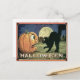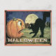 Vintage Halloween Pumpkin & Cat in Mosaic Postcard