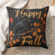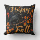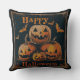 A whimsical vintage Halloween scene featuring Jack-O-Lanterns on one side and "Happy Fall: floral motif with a crow on the other side.