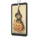 Adorable, vintage picture of a little girl witch and her large, smiling pumpkin, is featured on each side of this car air freshener. With message, "Happy Halloween" and the "new car' scent, this makes a great decoration in your car or as a small gift for Halloween!