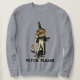 This sweatshirt is perfect for Halloween with its vintage style illustration of a classic witch and cat in black, orange and cream. The slogan "WITCH, PLEASE" can be customised with your own text.