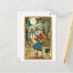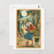 This postcard is a reproduction of a vintage Halloween postcard that features a witch with a black cat and an owl.