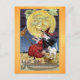 Anyone would love to receive this vintage Halloween postcard featuring a retro illustration of the charms of the witching hour, including a witch on a broom, a cat, and the moon!