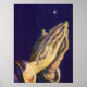 Vintage Illustration religious Christianity design featuring a pair of hands from an old man clasped together in holy prayer toward Heaven and the night sky. In Christian tradition, the Star of Bethlehem, also called the Christmas Star, revealed the birth of Jesus Christ to the magi, and later led them to Bethlehem. The original piece was Praying Hands aka Study of the Hands of an Apostle created by Albrecht Durer, c1508.
