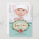 Introduce your new "baby bunny" on this lovely, vintage photo card. The teal background has an oblong floral embellishment with the words "Happy Eater" pre-printed.