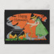 Vintage Happy Halloween Drawing Old Witch & Bats Postcard