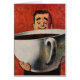 Vintage Happy Man Drinking Giant Cup of Coffee