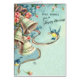 Lovely vintage greeting card to give best wishes on a happy marriage. Wedding bells, ribbons, pink roses, and little blue birds