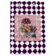 Pretty vintage botanicals on distressed light purple floral background with purple and white Harlequin diamond pattern border adds a lovely garden element.