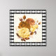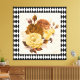 Pretty vintage yellow rose botanicals on distressed cream background with black and white Harlequin diamond pattern border adds a lovely garden element to any home decor
