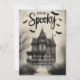 Summon your guests for a night of frights with this elegantly eerie Halloween party invitation. The design sets a mysterious tone, featuring a striking, detailed illustration of a gothic haunted mansion shrouded in mist at the edge of a dark wood.