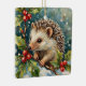 A sweet vintage Christmas painting featuring a hedgehog nestled in holly and snow. A charming and nostalgic woodland scene perfect for holiday cards and décor.