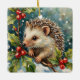 Vintage Hedgehog Among Holly Christmas Ceramic Ornament