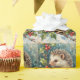 A sweet vintage Christmas painting featuring a hedgehog nestled in holly and snow. A charming and nostalgic woodland scene perfect for holiday cards and décor.