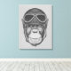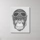 This design features a portrait of a chimpanzee wearing a vintage motorcycle helmet and goggle.