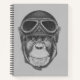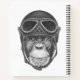 This design features a portrait of a chimpanzee wearing a vintage motorcycle helmet and goggle.