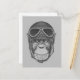 This design features a portrait of a chimpanzee wearing a vintage motorcycle helmet and goggle.