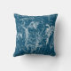 Stylish throw pillow with vintage French constellation chart, known as ' Hercules and Corona Borealis' - white star chart overlay on blue background
