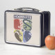 This is a standard metal lunchbox that appears to work just fine. We designed this box ourselves with an uploaded photo and custom text on the front and back. It looks absolutely beautiful except the front of the lunchbox is not centered like it shows in the photo. The print borders don't align with the inset flat part of the box where the preview photo online showed it perfectly centered in there. The back looks nice and centered though.