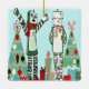 Vintage Holiday Robots and Trees Ceramic Ornament