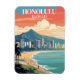 Escape to the tropical paradise of Honolulu with this vintage-style travel illustration magnet. This classic Hawaiian souvenir captures the beauty of its beaches and iconic landmarks like Diamond Head. Perfect for island lovers and collectors of vintage US travel memorabilia.